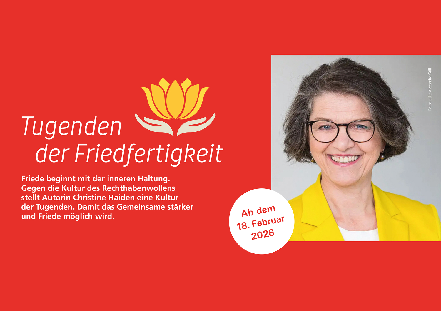 Christine Haiden: Frieden ist für mich eine Möglichkeitsform menschlicher Existenz. Wir haben ja unterschiedliche Möglichkeiten, mit uns, unserem Leben und unserer Umgebung umzugehen. Friede entsteht aus meiner Sicht aus dem Respekt vor der Freiheit aller Wesen, die auf dieser Erde unterwegs sind. Diese Freiheit finde ich ebenso zentral wie den Respekt davor.