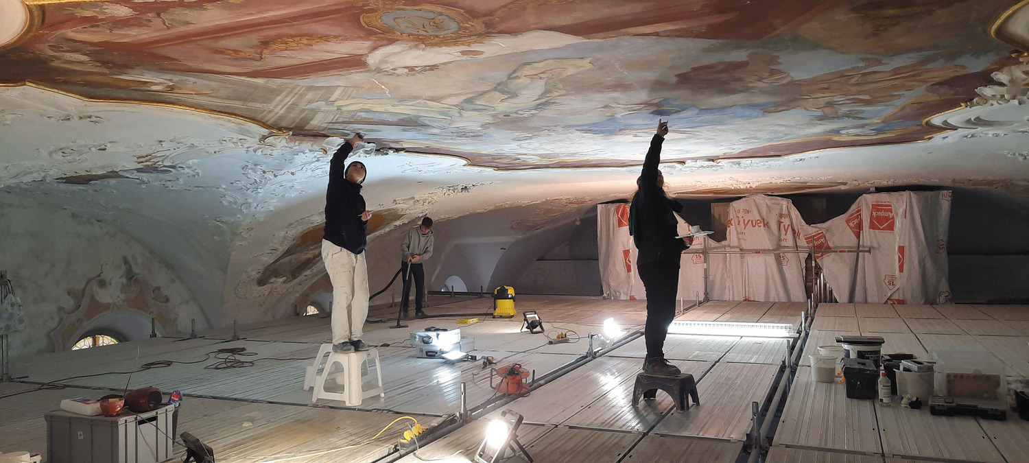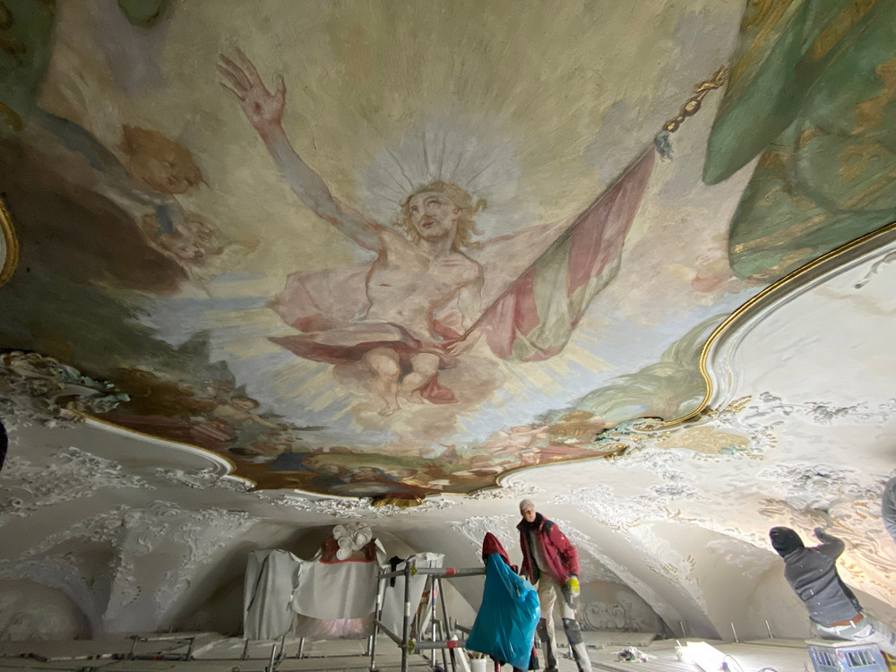 Die Renovierung der Galluskirche befindet sich in der Endphase. Die Wiedereröffnung wird am 20. Oktober stattfinden. Das Ergebnis der Restaurierung der Deckengemälde und der großartigen Stuckarbeiten sind bereits sichtbar. Christian Giongo, verantwortlich für die restauratorischen Stuck- und Farbfassungen, wird über seine Arbeit berichten. Die Führung startet um 11 Uhr.