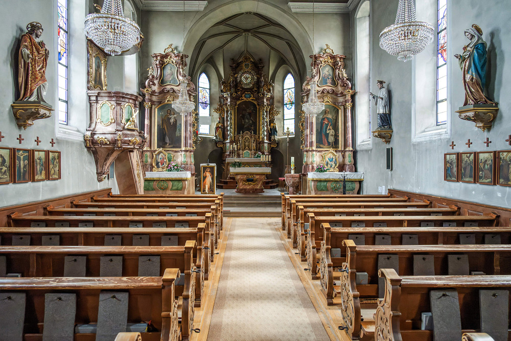 Vor über 40 Jahren wurde der Innenraum der Pfarrkirche St. Karl letztmalig umgebaut und restauriert. Die Jahrzehnte haben ihre Spuren hinterlassen und so war eine Renovierung unumgänglich. Es wurden daher von Mitte April bis Mitte Dezember 2023 sämtliche Wand- und Deckenflächen gereinigt und neu gekalkt, die Deckenfresken (mit einer Fläche von rund 200 m2) von Andreas Brugger aus dem Jahre 1798, der Renaissancealtar von 1580 sowie sämtliches Inventar restauriert. Alle elektrischen Anlagen und die Beschallungsanlage wurden auf den neuesten Stand gebracht. Zusätzlich wurden die Fensterflügel motorisiert, um eine automatische Belüftung zu ermöglichen. Bei der Gollini-Orgel von 1986 wurde die komplette Mechanik erneuert und die Orgel teilweise umgebaut.