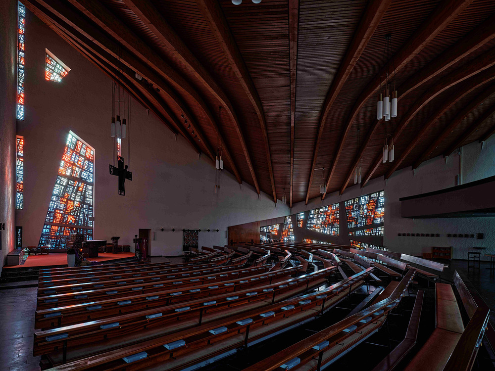 Die Kirche St. Kolumban zeigt eine einzigartige Symbolarchitektur und ist doch eingebettet in die Architektur- und Kirchenbaugeschichte des 20. Jahrhunderts, nach dem Zweiten Weltkrieg. Dem Architekten Hans Burtscher war es ein Herzensanliegen, die Leistungsfähigkeit des heimischen Handwerks einzusetzen. Die mächtige markante Leimbinderkonstruktion des Daches war Voraussetzung für den Zeltcharakter der Kirche. Architektur und Innengestaltung drücken sowohl die Wanderbewegungen der Menschen im neuen Stadtteil als auch den Missionsweg des irischen Abtes Kolumban aus, der um 610 in Bregenz wirkte und Europa als gemeinsamen Kulturraum sah. Am Tag des Denkmals wird den Besucher:innen die einzigartige Symbolarchitektur von St. Kolumban mittels Führungen – jeweils um 11 und 16.30 Uhr nähergebracht.
