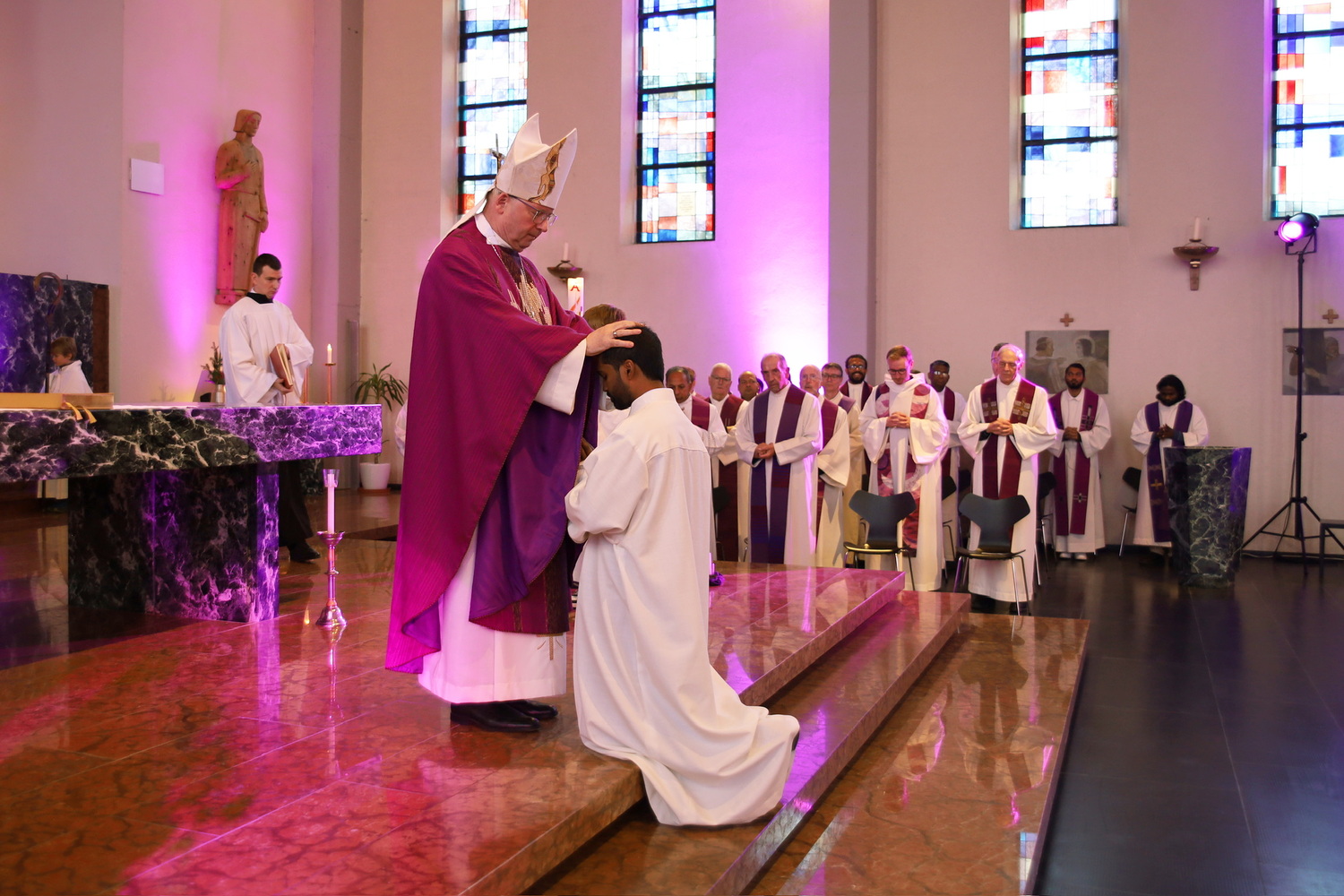 In der Pfarrkirche St. Gebhard wurde der aus Kerala stammende Inder von Bischof Benno Elbs zum Diakon geweiht. „Mit seinem ‚Ja‘ stellt er sich in den Dienst der Menschen und wird nun sein Praktikum in der Pfarre St. Gebhard in Bregenz beginnen“, kommentierte Bischof Benno das besondere Ereignis.
