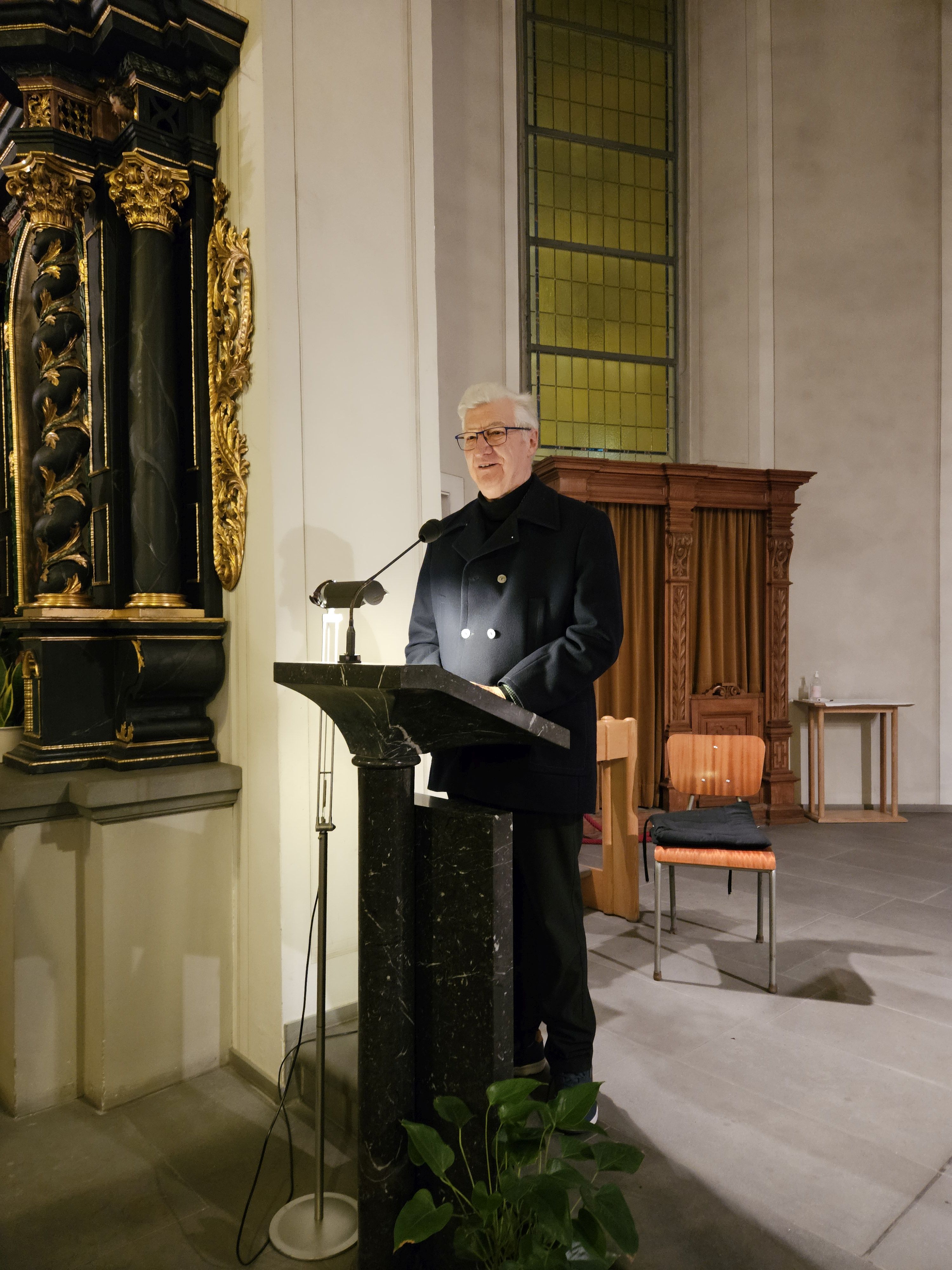 Er teilte mit den Zuhörer:innen Erinnerungen an seine Kindheit und schilderte wie wichtig das Aufstellen der Krippe für ihn damals war und wie jede einzelne Figur ihre eigene Geschichte erzählt.