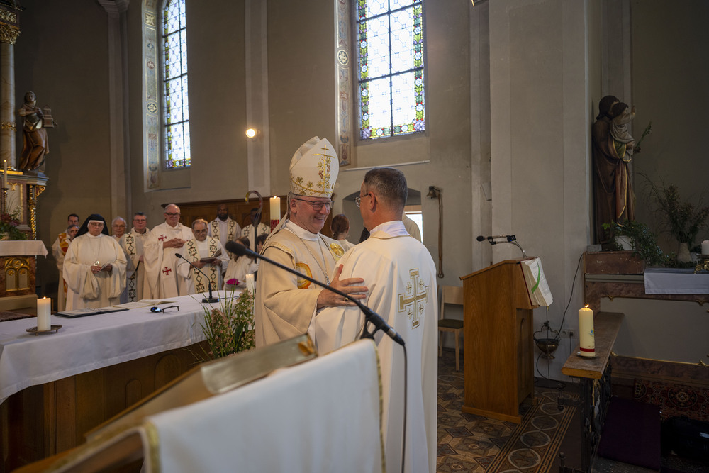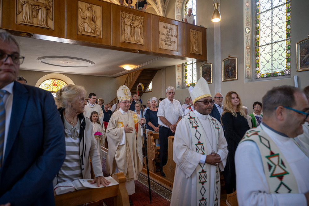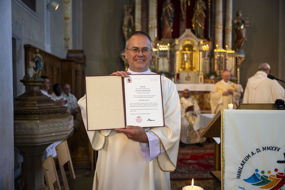 Mit großer Freude leitete dann ein weiterer bekannter Sohn der Gemeinde Langen, Bischof Benno Elbs, den Gottesdienst. Er stellte die Frage „Wie finden Menschen zu Gott?“ und verwies auf die Bibelstelle (Mt 4, 18-22), in dem die ersten Apostel dem Ruf Jesu „Kommt her, mir nach“ nachfolgten, ohne lange zu zögern. Diese Aufforderung hatte Mario Nachbaur auch als Leitwort für seinen diakonalen Dienst gewählt.