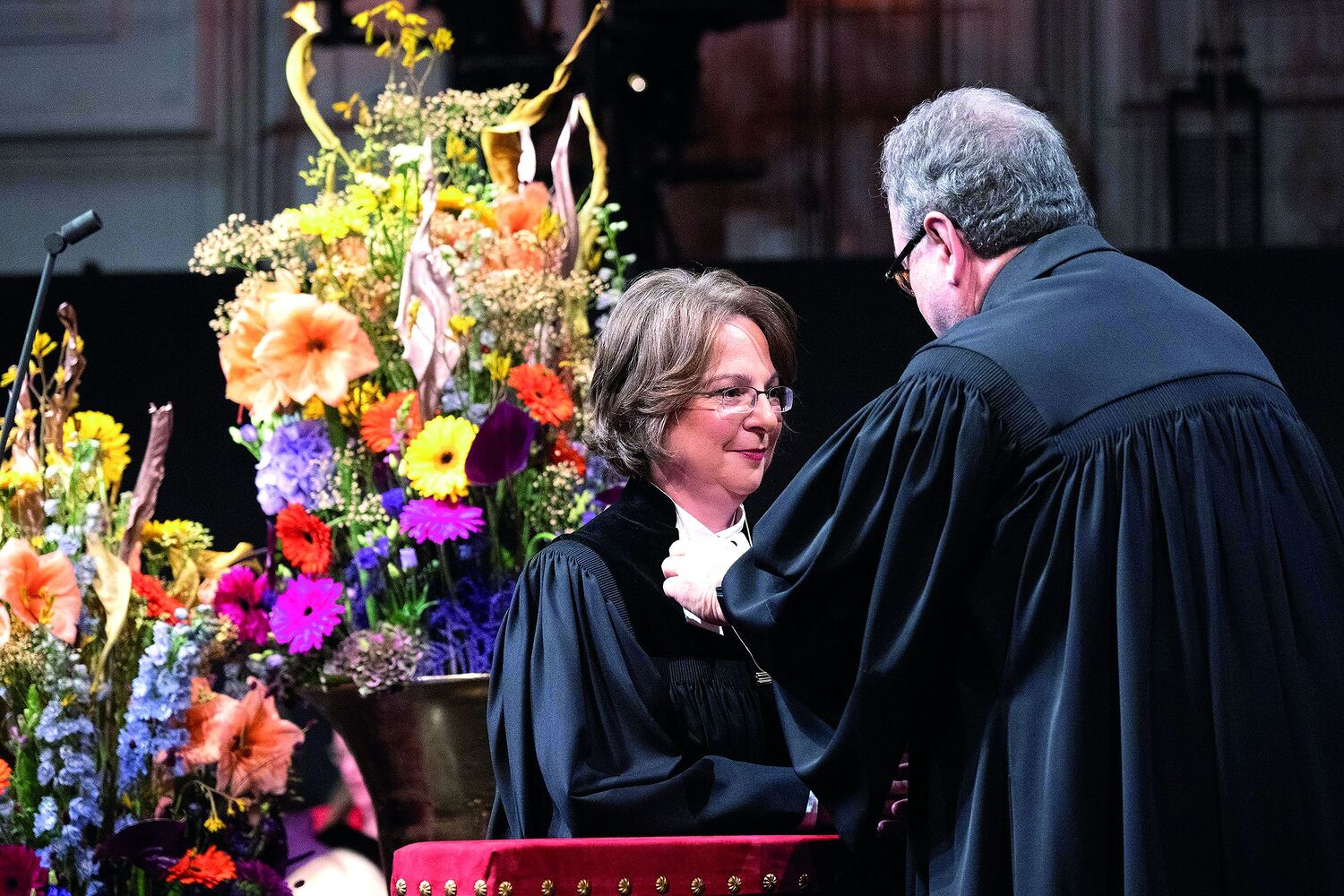 Richter: Das Gottesdienstvorbereiten! Für jeden evangelischen Gottesdienst wird jedes Gebet neu geschrieben, bis auf das Vaterunser. Wenn Pfarrer:innen ihren Job ordentlich machen, schreiben sie also jeden Sonntag jeden Text neu. Das dauert, auch für Vollprofis, acht Stunden, wenn man es gut macht. Das ist wirklich ein Aufwand. Ich war neben meiner Professur in Bonn auch Predigerin in der Bonner Schlosskirche, also Universitätskirche. Vor dem Gottesdienst habe ich mich oft gefragt, warum ich mir das antue. Aber kaum habe ich geschaut, welcher Predigttext an der Reihe ist, hat es mich gepackt, und ich war drinnen im Geschehen. Die Arbeit an der liturgischen Formulierung gibt mir Kraft. Gottesdienst zu feiern auch. Und sonst: das Abendgebet. Am Abend alles nach oben abzugeben. Außerdem achtsam zu sein auf das, was jetzt gerade dran ist. Dass man sich das bewusst macht, es gut macht, und Danke dafür sagt oder Danke fühlt.