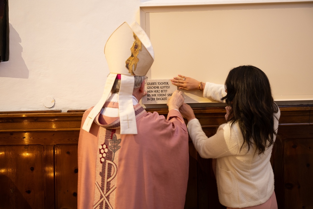 Im Anschluss an diese Festmesse wird Bischof Benno Elbs die Gedenkstätte für früh verstorbene Kinder in der Seitenkapelle der Antoniuskirche einweihen. „Es schenkt mir Trost, in der Kirche einen Ort zu haben, an dem ich meiner geliebten Tochter gedenken, Gott für das Geschenk ihres Lebens danken, für sie beten und Linderung für den tiefen Schmerz finden kann, den ihre Heimkehr hinterlassen hat, in der hoffnungsvollen Gewissheit, dass wir uns eines Tages in der Ewigkeit wiedersehen werden“, sagt die alleinerziehende Mutter Marianna Trinidad Lainez, die zusammen mit Bischof Benno die erste Gedenktafel der Gedenkstätte an der dafür vorbereiteten Seitenwand der Kapelle befestigen wird.