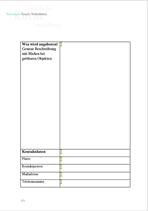 Kontaktformular Angebot Tausch-/Verleihbörse
